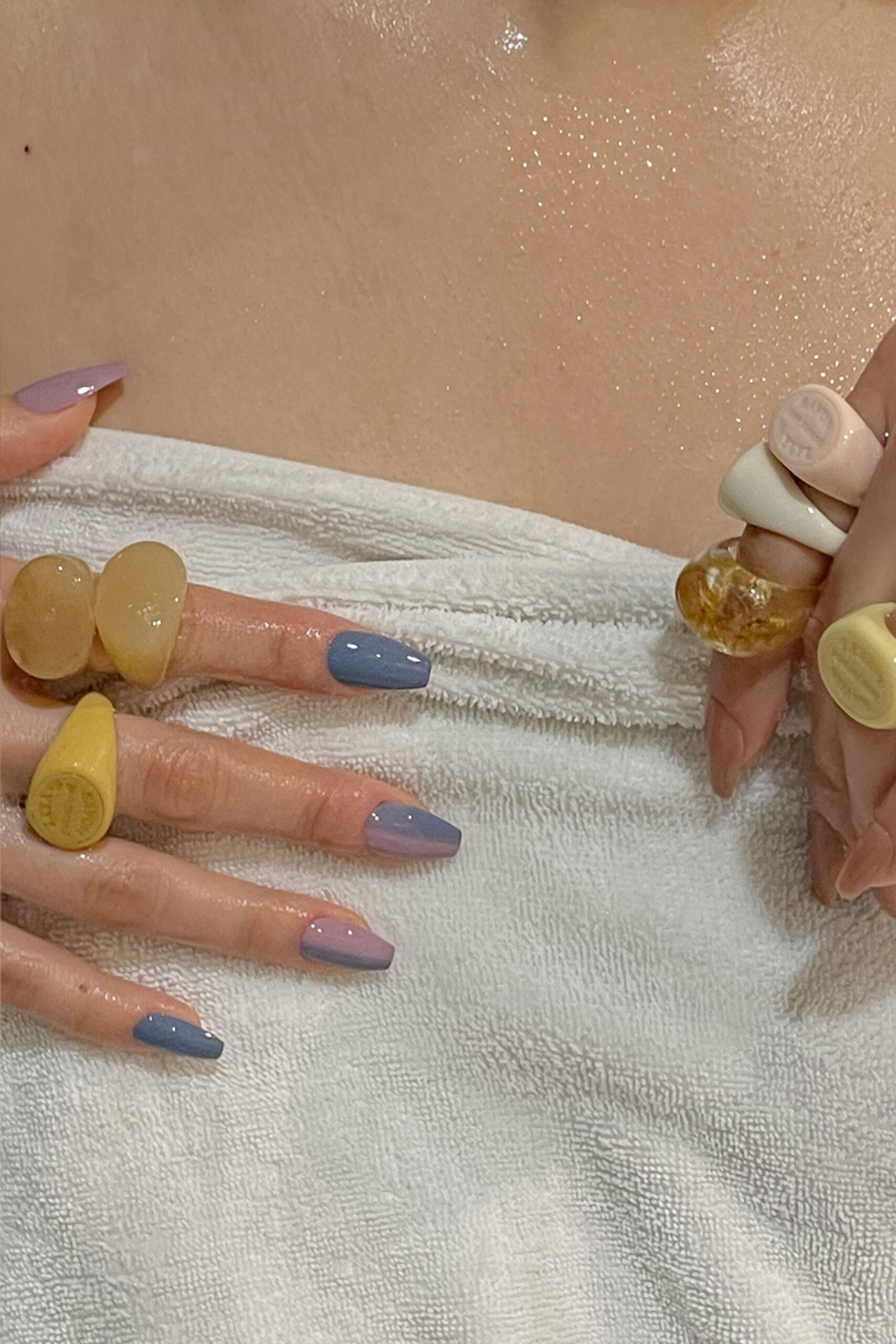 Savon collection은 2022년 첫 릴리즈 이후, 여러 물성과 형태로 전개하고 있는 라인인데요. 비누의 질감과 컬러에서 영감받아 출시한 Savon Ring을 출시했고, 이후 금속과 에폭시의 대비되는 물성으로 풀어낸 제품을 만들었어요. 또한 반지에서 목걸이, 헤어 핀 형태로 확장하며 다양한 아이템을 만들었습니다. Savon collection은 영리영리의 아이덴티티와 물성에 대한 영리영리만의 시도를 잘 보여주는 대표적인 컬렉션이라고 생각해요.