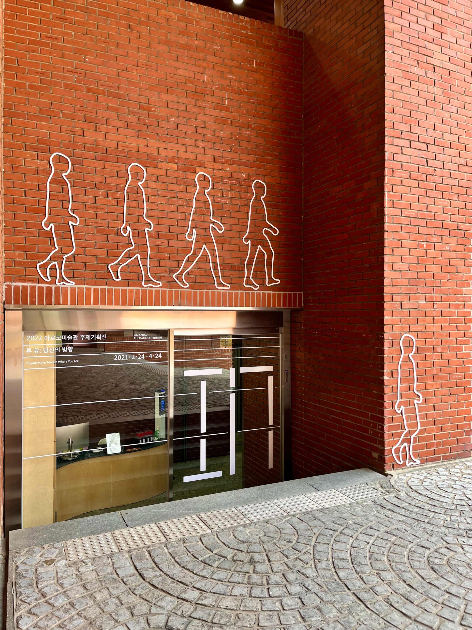 아르코미술관에서 열린 전시 «투유: 당신의 방향 To You: Move Toward Where You Are»는 팬데믹 속에서 벌어지는 여러 이동을 보여주는 전시에요. 저는 스캐니메이션scanimation 기법을 활용해 무빙포스터를 디자인했습니다. 앞으로 나아가고 있는 듯 보이지만, 여전히 제자리걸음을 하는 답답한 상황을 표현하고 싶었어요.