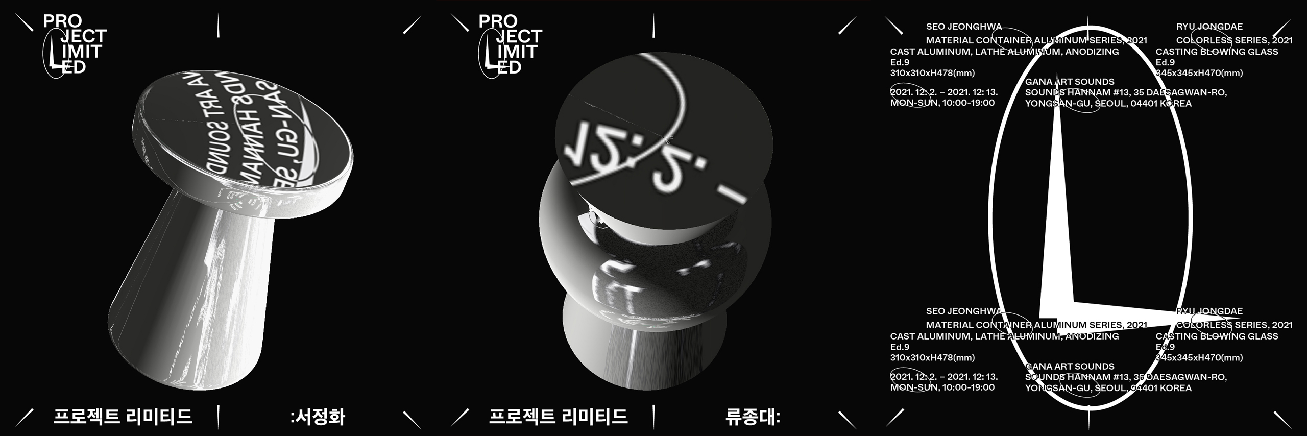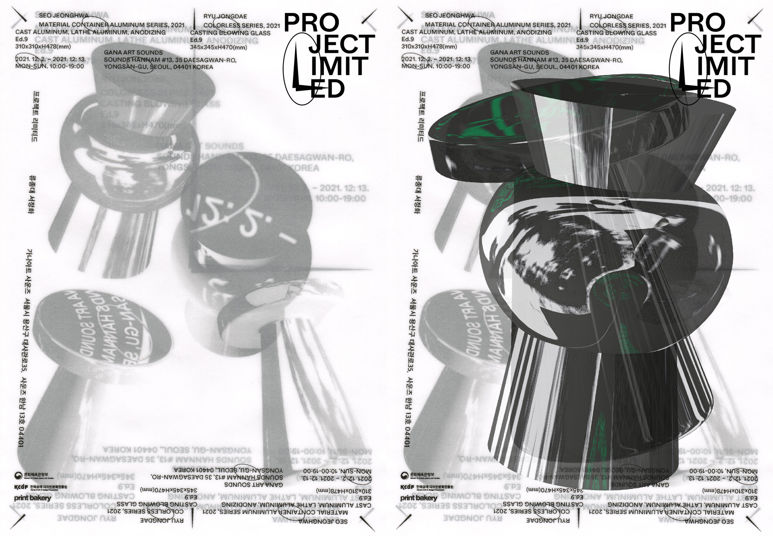«프로젝트 리미티드project LIMITED»의 포스터 작업도 있습니다. 전시명에서 착안해, 시간이 쌓인 모습을 여러 장의 트레이싱지를 겹쳐서 표현했어요. 여기에 참여 작가인 서정화, 류종대 님의 작품 실루엣을 중첩해 포스터를 완성했습니다.