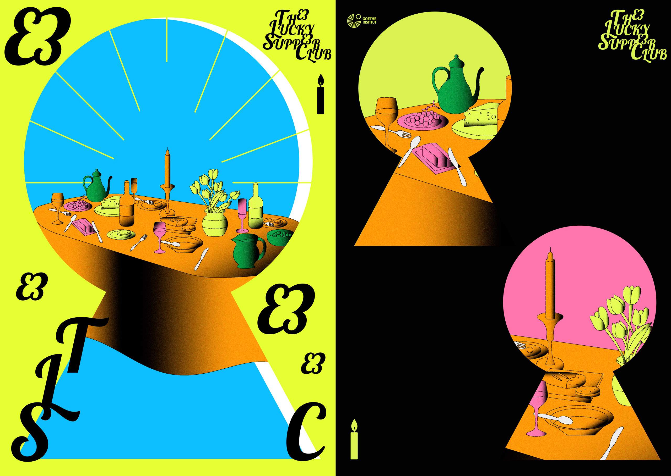 ‘럭키서퍼클럽’은 독일문화원에서 주최하는, 비밀스럽지만 자유롭고 편안한 분위기의 행사예요. 다양한 배경을 가진 여성의 경험을 듣고, 음식을 나눠 먹으며 의견을 주고받는 모임이죠. 저는 행사 포스터를 제작했는데요. 열쇠 구멍의 형태를 활용해 누군가의 이야기를 훔쳐보는 듯한 장면을 연출했습니다.