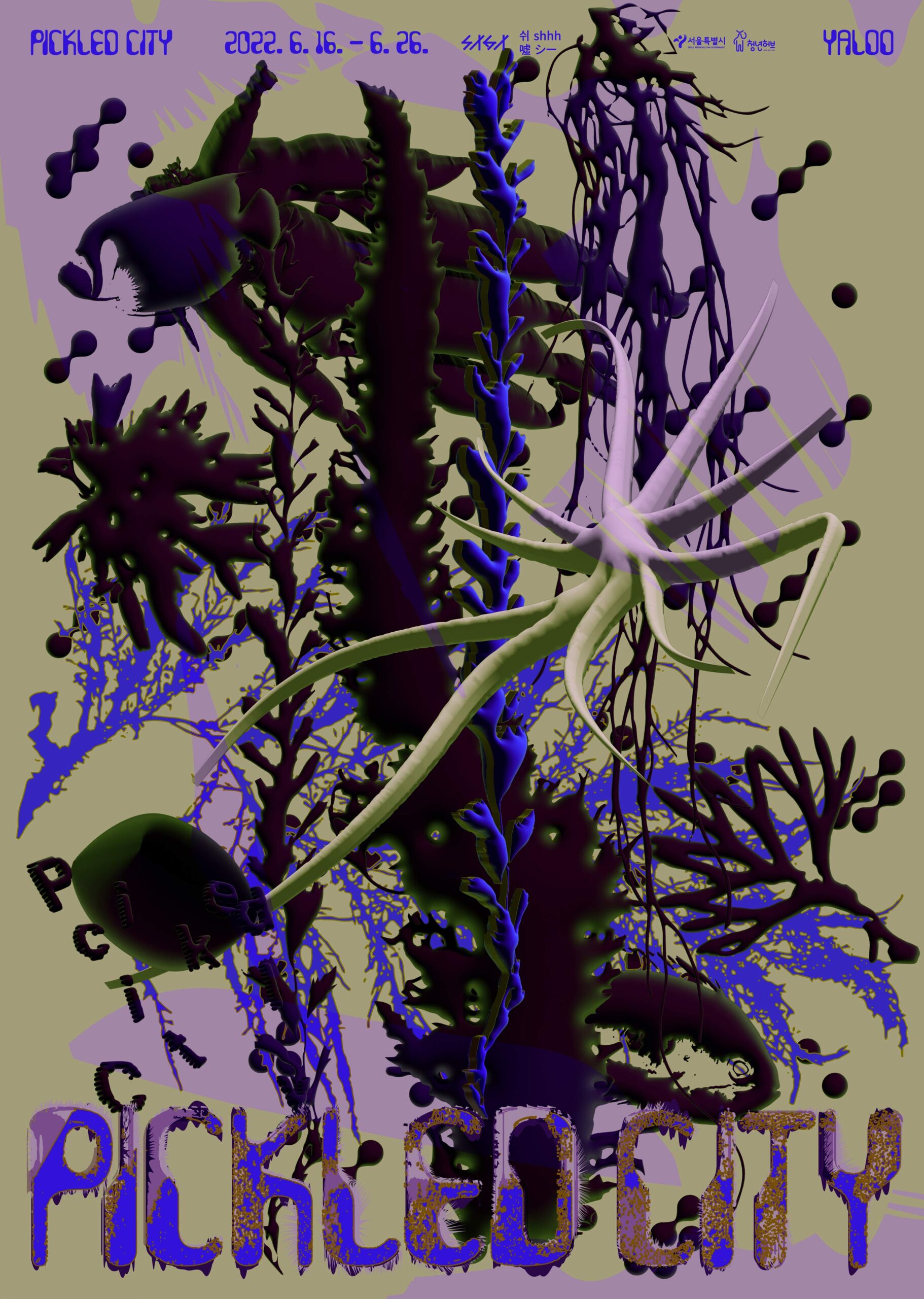 미디어 아티스트 얄루 작가의 개인전 «Picked City»의 포스터도 작업했습니다. 어두운 심해 속 디지털 파도가 치는 모습을 표현했어요.